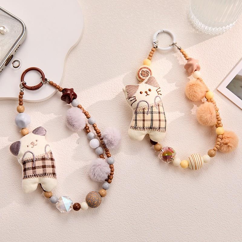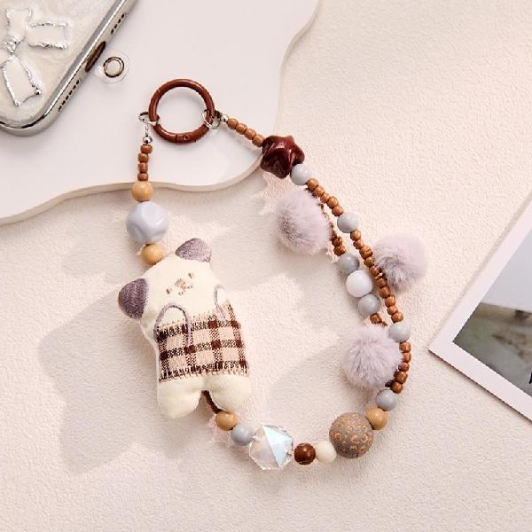 New Plush Cat Beaded Phone Charm For Women, Cute Cartoon