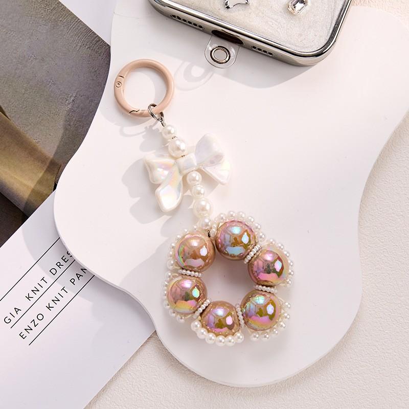 New Acrylic Beaded Bow Car Keychain Charm Candy Color Painted