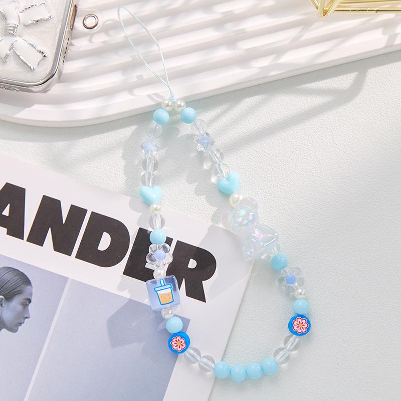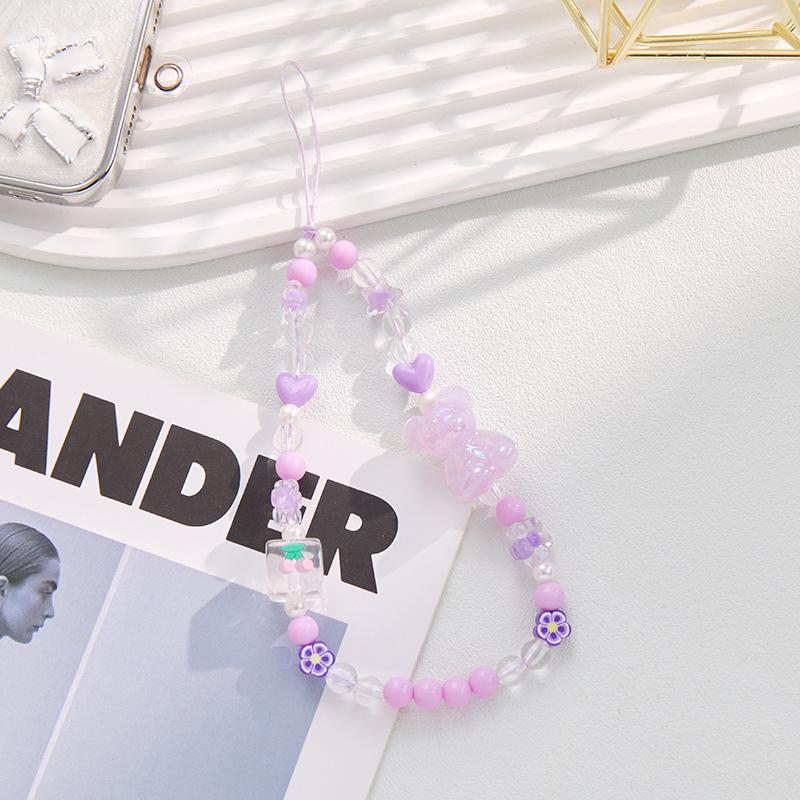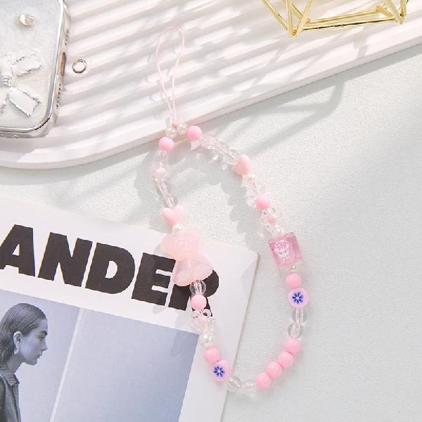 Phone Lanyard Handmade Beaded Bear Charm Crystal Bead Bow Anti-lost
