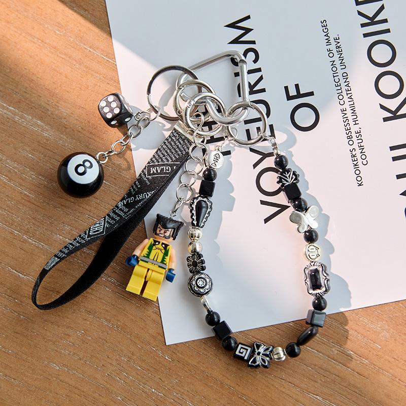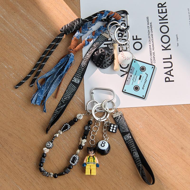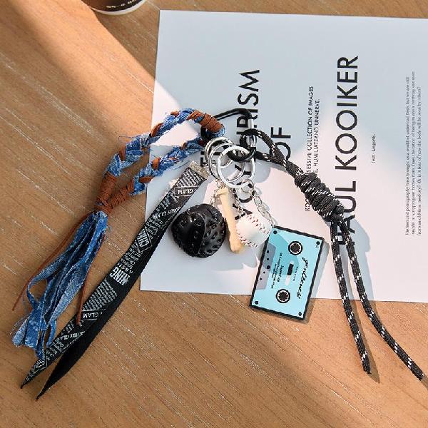 Ins Blogger Style Denim Heart & Block Man Bag Charm Keychain